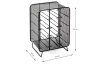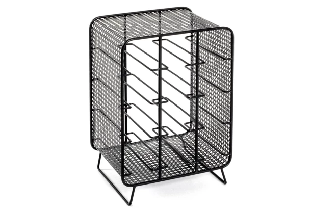 Kovový stojan na fľaše v prevedení čierny lak má vonkajšie plochy v imitácii viedenského výpletu. Pôsobí luxusne zaujme na pohľad. Stojan poslúži na akékoľvek ukladanie fliaš, nielen na víno.