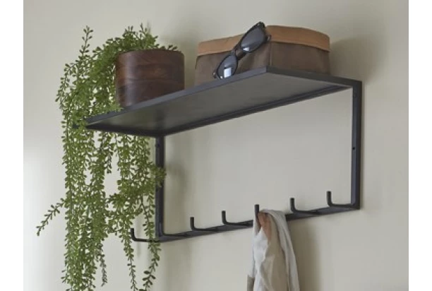 Nástenný šatníkový panel z čierneho kovu sa univerzálne hodí do každej predsiene. Predsieňový vešiak obsahuje 7 závesných háčikov aj hornú odkladaciu policu.