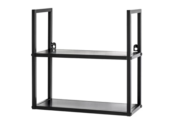 Nástenný regál z čierneho kovu o celkovej šírke 36 cm ponúka dve odkladacie police. Moderný policový regál využijete v obývačke, domácej pracovni alebo v garáži. Tento jednoducho moderný regál z kovu sa hodí takmer kamkoľvek.
