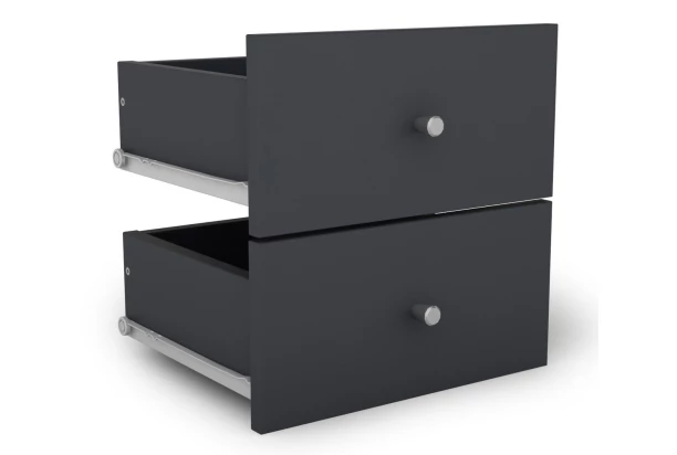 Sada 2 kusov zásuviek v grafitovej farbe z programu Jerry – zásuvky sú určené na namontovanie do akejkoľvek priehradky regálu Jerry. Ľahko si tak prispôsobíte úložné priestory regálu podľa potreby.