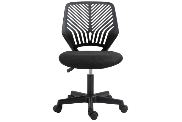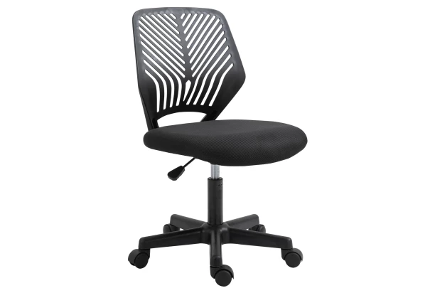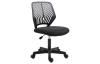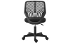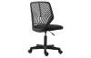 Detská stolička k písaciemu stolu má mäkko polstrovaný sedák potiahnutý čiernou látkou a ponúka možnosť výškového nastavenia.