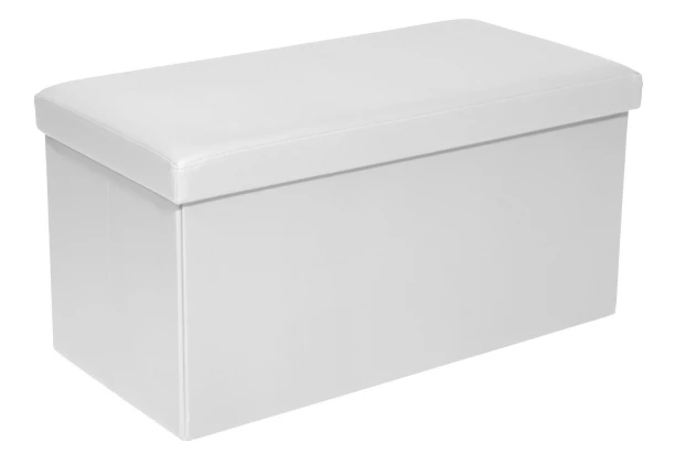 Obdĺžnikový taburet má jednoduchú skladaciu konštrukciu a pod sedákom ukrýva praktický úložný priestor. Taburet je potiahnutý ekokožou vo farbe biela.