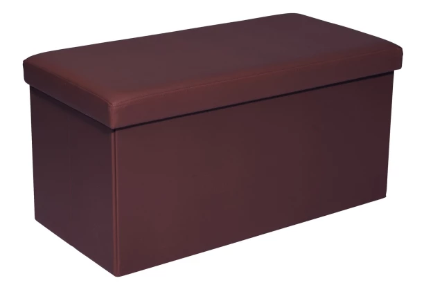 Obdĺžny taburet má jednoduchú skladaciu konštrukciu a pod sedákom ukrýva praktický úložný priestor. Taburet je potiahnutý ekokožou vo farbe hnedá.