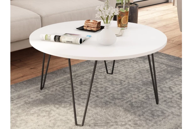 Okrúhly konferenčný stolík s priemerom 80 cm je vyrobený v bielom prevedení a skvele doplní štýlovo zariadenú obývačku. Čierna kovová podnož je stabilná a zároveň pôsobí vzdušne.