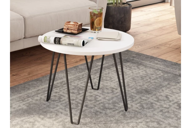 Okrúhly konferenčný/odkladací stolík s priemerom 50 cm je vyrobený v bielom prevedení a skvele doplní štýlovo zariadenú obývačku. Čierna kovová podnož je stabilná a zároveň pôsobí vzdušne.