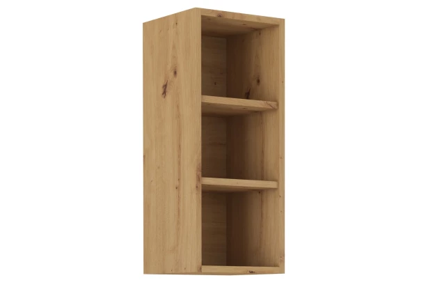 Horný kuchynský regál so šírkou 30 cm z programu Modena – kuchynský nábytok v drevodekore dub artisan pôsobí moderne a útulne zároveň. Jednotlivé elementy z kuchynského programu Modena môžete medzi sebou rôzne kombinovať a zostaviť si tak kuchyňu podľa vašich predstáv a priestorových možností.
