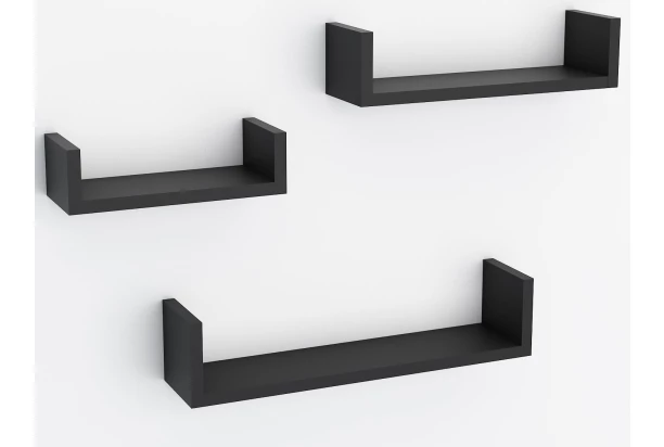 Sada 3 kusov poličiek v rôznych veľkostiach v čiernej farbe prakticky poslúžia v takmer každej miestnosti Vášho bytu. Poličky môžu byť rozmiestnené samostatne alebo tvoriť spoločnú kompozíciu. Vhodné na dekorácie, každodenné potreby, drobné knižky, kuchynské koreničky či poháre alebo čokoľvek iné.