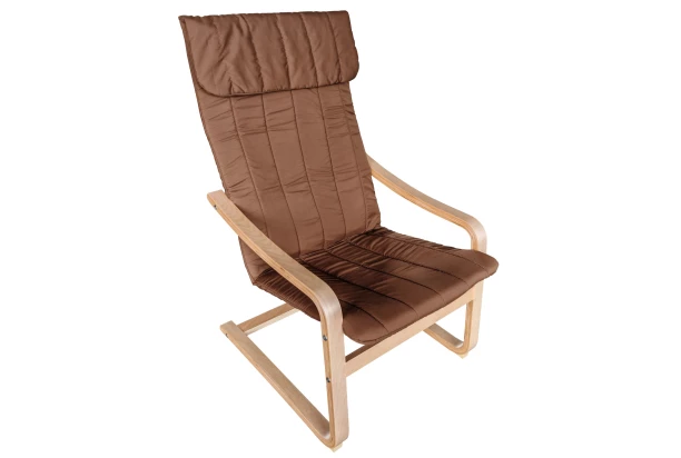 Klasické relaxačné kreslo s drevenými podrúčkami pre príjemné odpočinkové sedenie nielen v priestore obývačky. Látkový poťah vo farbe hnedá.