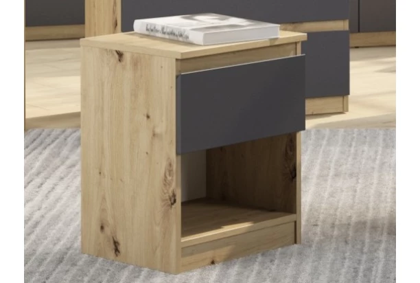 Skrinka/nočný stolík v dekore dub artisan/grafit ponúka praktické úložné priestory, účelnosť a čisté línie tvarov, ktoré sa hodia do každého interiéru.
