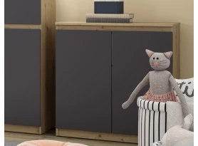 Skrinka/nočný stolík s 2 zásuvkami v dekore dub artisan/grafit ponúka praktické úložné priestory, účelnosť a čisté línie tvarov, ktoré sa hodia do každého interiéru.
