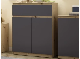 Široká komoda so šírkou 150 cm v dekore dub artisan/grafit ponúka praktické úložné priestory, účelnosť a čisté línie tvarov, ktoré sa hodia do každého interiéru.