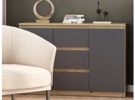Široká komoda Carlos, dub artisan/grafit, 150 cm