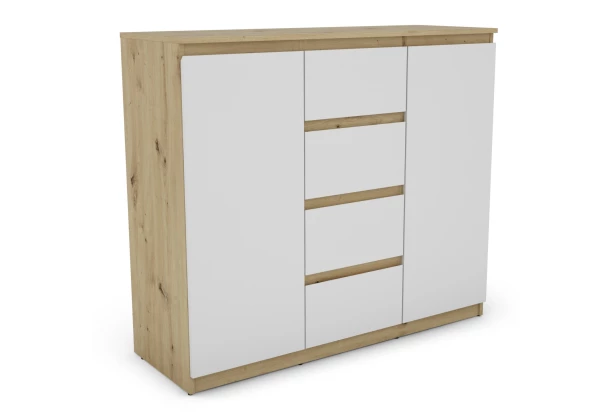 Široká komoda so 4 zásuvkami Carlos, dub artisan/biela, 120 cm