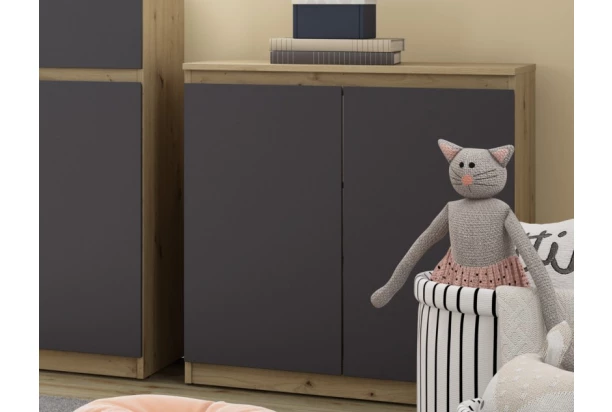Skrinka 2-dverová so šírkou 75 cm v dekore dub artisan/grafit ponúka praktické úložné priestory, účelnosť a čisté línie tvarov, ktoré sa hodia do každého interiéru.