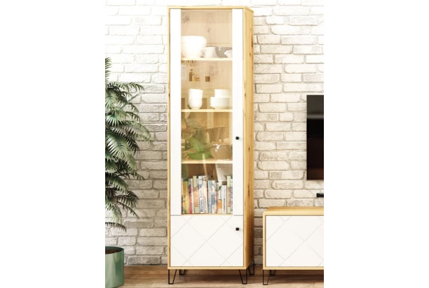 Vysoká vitrína Bilbao, dub artisan/biela