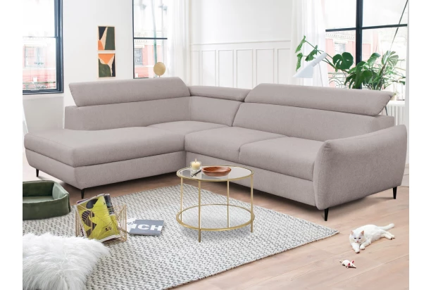 Rohová sedacia súprava v elegantnom dizajne prekvapí veľmi komfortným sedením. Pohodlne mäkké sedáky s polohovaním chrbtových opierok sa postarajú o Vašu každodennú pohodu. V prípade potreby môžete využiť praktický úložný priestor pod otomanom, ktorý vytvára ľavý roh. Rozkladaciu funkciu pre príležitostné spanie ocení nielen Vaša návšteva. Rohová sedačka je očalúnená príjemne mäkkou látkou v odtieni svetlá ružová. Vďaka čiernym kovovým nôžkam pôsobí sedačka v interiéri moderne a zároveň vzdušne.