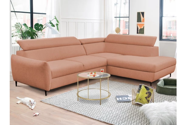 Rohová sedacia súprava Othello, lososová látka, pravý roh