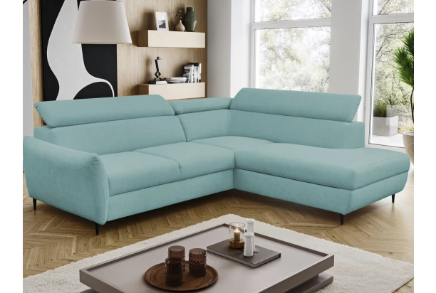 Rohová sedacia súprava v elegantnom dizajne prekvapí veľmi komfortným sedením. Pohodlne mäkké sedáky s polohovaním chrbtových opierok sa postarajú o vašu každodennú pohodu. V prípade potreby môžete využiť praktický úložný priestor pod otomanom, ktorý vytvára pravý roh. Rozkladaciu funkciu pre príležitostné spanie ocenia nielen vaša návšteva. Rohová sedačka je očalúnená príjemne mäkkou látkou v odtieni mentolovo zelená. Vďaka čiernym kovovým nožičkám pôsobí sedačka v interiéri moderne a zároveň vzdušne.