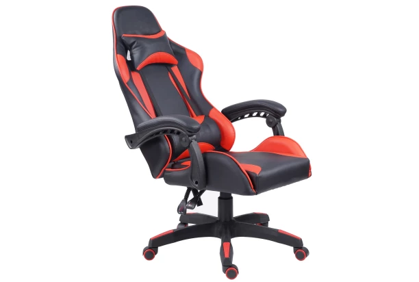 Kancelárske herné kreslo má športový dizajn a skvele sa hodí aj pre mladých. Komfortná stolička je očalúnená kombináciou červená/čierna ekokoža. Vybavené výškovo nastaviteľnými vankúšikmi, funkciou výškového nastavitelného sedadla aj funkciou s polohovaním sklonu operadla.