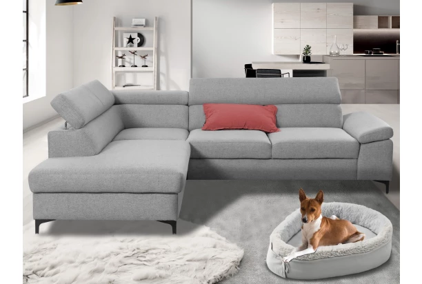 Moderná rohová sedacia súprava veľkostne padne takmer do každého bytu. Je vybavená polohovateľnými opierkami chrbta, rozkladacou funkciou aj úložným priestorom pod otomanom. Sedačka tvorí ľavý roh a je očalúnená tkaninou vo farbe svetlo šedý melír.