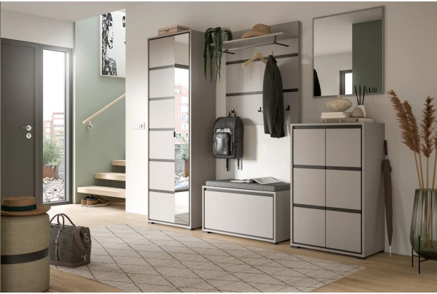 Predsieňová šatníková skriňa so zrkadlom Jaru, šedá