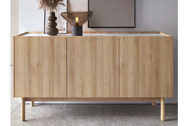 Vysoká komoda Boho, dub riviéra/biely mramor