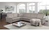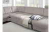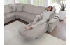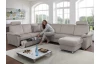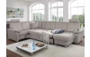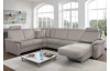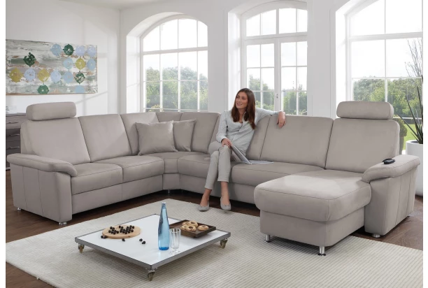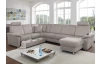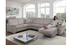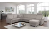 Priestranná sedacia súprava v tvare U má nadčasový elegantný dizajn a ponúka pohodlné sedenie pre celú rodinu aj priateľov. Oceníte stabilnú konštrukciu z kombinácie tvrdého dreva a jadra zo super-bonellových pružín a vysoko kvalitnej polyuretánovej peny. Rozmerná sedačka je očalúnená jemne štruktúrovanou látkou vo farbe svetlo šedá, ktorá pripomína optiku kože. Táto luxusná sedačka obsahuje príjemné doplnky ako sú dve výškovo nastaviteľné opierky hlavy alebo praktickú úložnú zásuvku, ktorá je ukrytá pod sedákom. Vaša návšteva uvíta funkciu rozkladu na príležitostné lôžko. Počas sledovania televízie alebo čítania využijete relaxačnú funkciu polohovania operadla v rohovom diele sedačky. Ďalšou skvelou vychytávkou tejto sedačky je elektronická relaxačná funkcia s výsuvom pravého otomanu, kedy sa ľahko a rýchlo pomocou ovládača postupne predĺži plocha otomanu a zároveň sklopí chrbtové operadlo – vznikne tak komfortné lehátko, ktoré oceníte napríklad po ťažkom dni v práci alebo počas chvíľ domácej pohody.