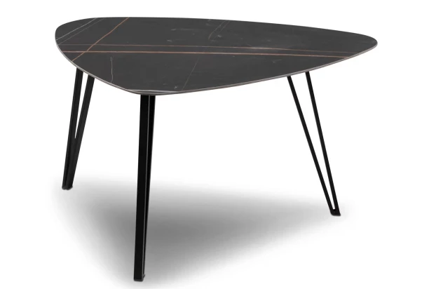 Konferenčný stolík s veľkosťou 83×68 cm vyzerá luxusne vďaka imitácii tmavého mramoru. Moderný design stolíka dotvárajú stabilné nohy z čierneho kovu. Tento zaoblený stolík zaujme na pohľad pri každej sedačke alebo pohovke.