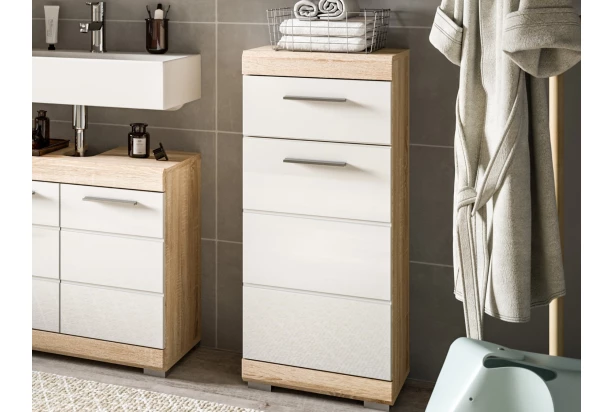 Kúpeľňová stojacia skrinka Lambada, dub sonoma/biela lesk