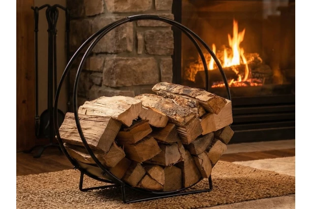 Čierny kovový stojan na drevo je praktickým doplnkom ku krbu – poslúži tak nielen v priestore obývačky, kde splní praktický účel a zároveň bude pekne vyzerať. Stabilná konštrukcia s priemerom 50 cm poskytuje dostatok miesta na uloženie drevených klátov, ktoré budete mať pri prikladaní do ohňa vždy po ruke.