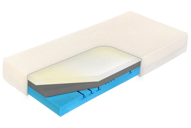 - stredová vrstva: hybridná pena s vyššou tuhosťou, pružná, vzdušná a odolná