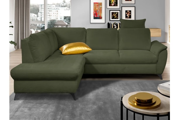 Elegantná rohová sedacia súprava Geneva má zaoblené tvary a s otomanom vytvára ľavý roh. Komfortne ladené priestranné sedenie poskytuje každodenné pohodlie. Rohová sedačka je očalúnená mäkko štruktúrovanou látkou vo farbe melírová smaragdovo zelená. Prakticky poslúži aj úložný priestor, kam uschováte napríklad sezónne veci. Vďaka funkcii rozkladu na príležitostné spanie môžete ľahko relaxovať alebo privítať napríklad vašu návštevu. Táto elegantná sedačka sa hodí k akémukoľvek štýlu.