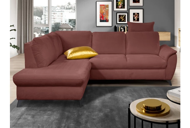 Elegantná rohová sedacia súprava Geneva má zaoblené tvary a s otomanom vytvára ľavý roh. Komfortne ladené priestranné sedenie poskytuje každodenné pohodlie. Rohová sedačka je očalúnená mäkko štruktúrovanou látkou vo farbe melírová oranžovo-hnedá. Prakticky posúži aj úložný priestor, kam uschováte napríklad sezónne veci. Vďaka funkcii rozkladu na príležitostné spanie môžete ľahko relaxovať alebo privítať napríklad vašu návštevu. Táto elegantná sedačka sa hodí k akémukoľvek štýlu.