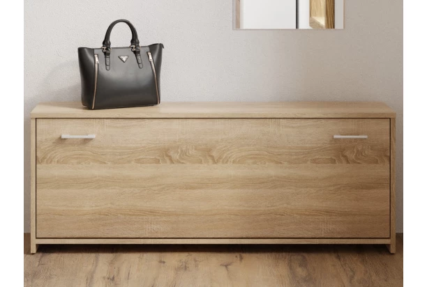 Jednoducho praktický botník sa hodí do každej predsiene alebo šatne. Za výklopnými dverami nájdete dva rady priehradiek na topánky. Vyrobený v dekore dub sonoma.