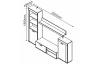 - TV skrinka: 1× ľavé sklápacie dvere (otvorený úložný priestor), 2× otvorená priehradka (zadný otvor na pretiahnutie kábla), nosnosť hornej TV plochy do 30 kg, rozmery: 132×37×42 cm