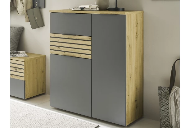 Predsieňová skrinka/botník Milan, dub artisan/sivá