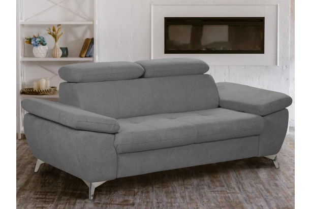 Moderný trojsedák v trendovom štýle, ponúka komfortné sedenie, ktoré navyše dopĺňajú polohovateľné podrúčky a polohovateľné chrbtové opierky – ľahko si tak môžete prispôsobiť štýl sedenia podľa Vašej individuálnej potreby. Trojmiestna pohovka je očalúnená príjemne mäkkou štruktúrovanou látkou v odtieni kamenná stredne šedá. Kovová podnož v chrómovo lesklom prevedení, pôsobí vzdušne a navyše umožňuje využiť aj váš robotický vysávač. Trojsedák pre komfortnú, modernú a zároveň praktickú domácnosť.