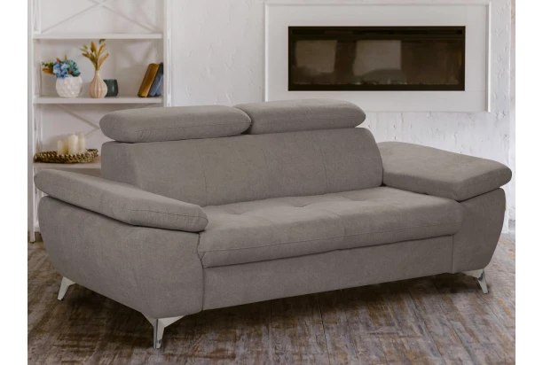 Moderný trojsedák v trendovom štýle, ponúka komfortné sedenie, ktoré navyše dopĺňajú polohovateľné podrúčky a polohovateľné chrbtové opierky – ľahko si tak môžete prispôsobiť štýl sedenia podľa Vašej individuálnej potreby. Trojmiestna pohovka je očalúnená príjemne mäkkou štruktúrovanou látkou v odtieni hnedo-béžová taupe. Kovová podnož v chrómovo lesklom prevedení, pôsobí vzdušne a navyše umožňuje využiť aj váš robotický vysávač. Trojsedák pre komfortnú, modernú a zároveň praktickú domácnosť.