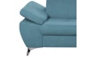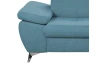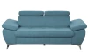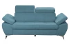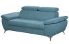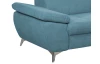 Moderný dvojsedák v trendovom štýle, ponúka komfortné sedenie, ktoré navyše dopĺňajú polohovateľné podrúčky a polohovateľné zádové opierky – ľahko si tak môžete prispôsobiť štýl sedenia podľa Vašej individuálnej potreby. Dvojmiestna pohovka je očalúnená príjemne mäkkou strukturovanou látkou v odtieni modrá. Kovová podnož v chrómovo lesklom prevedení pôsobí vzdušne a navyše umožňuje využiť aj váš robotický vysávač. Dvojsedák pre komfortnú, modernú a zároveň praktickú domácnosť.