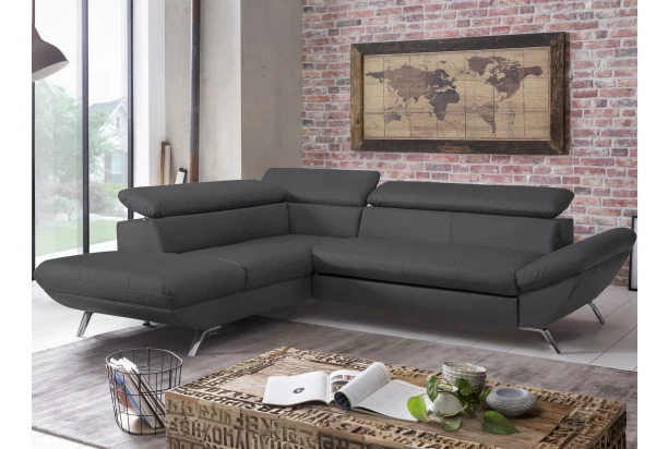Rohová sedacia súprava zaujme moderným dizajnom tvarov. Oceníte pohodlné sedenie, ktoré dopĺňajú polohovateľné chrbtové opierky, vďaka ktorým si prispôsobíte štýl sedenia podľa aktuálnej potreby. Rohová sedačka s otomanom tvorí ľavý roh a je očalúnená jemne štruktúrovanou látkou vo farbe čierna. Pod otomanom nájdete praktický úložný priestor. Sedačku môžete vďaka rozkladacej funkcii ľahko premeniť na lôžko na príležitostné spanie. Moderná kovová podnož korešponduje s tvarmi sedačky a umožňuje využiť počas upratovania aj váš robotický vysávač. Táto pohodlná rohová sedačka rozmerovo dobre pasuje aj do menšieho priestoru obývačky.