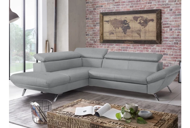 Rohová sedacia súprava zaujme moderným dizajnom tvarov. Oceníte pohodlné sedenie, ktoré dopĺňajú polohovateľné chrbtové opierky, vďaka ktorým si prispôsobíte štýl sedenia podľa aktuálnej potreby. Rohová sedačka s otomanom tvorí ľavý roh a je očalúnená jemne štruktúrovanou látkou v odtieni svetlo šedá. Pod otomanom nájdete praktický úložný priestor. Sedačku môžete vďaka rozkladacej funkcii ľahko premeniť na lôžko na príležitostné spanie. Moderná kovová podnož korešponduje s tvarmi sedačky a umožňuje využiť počas upratovania aj váš robotický vysávač. Táto pohodlná rohová sedačka rozmerovo dobre pasuje aj do menšieho priestoru obývačky.
