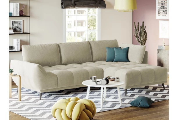 Rohová sedačka Allegra zaujme zaujímavým dizajnom a zároveň vytvorí pohodlné zákutia v priestore každej obývačky. Zaoblené tvary sedačky, dopĺňa výrazné prešívanie komfortného priestorného sedadla a veľké vankúše. Rohová sedacia súprava s bočným otomanom tvorí pravý roh. Očalúnená mäkkou a jemne štruktúrovanou látkou vo farbe béžová. Sedačku je možné vďaka rozkladacej funkcii na lôžko využiť aj na príležitostné spanie. Pod sedákom navyše nájdete praktický úložný priestor.
