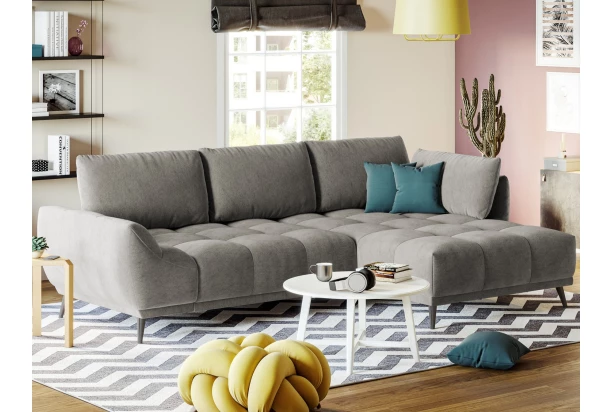 Rohová sedačka Allegra zaujme zaujímavým dizajnom a zároveň vytvorí pohodlné zákutia v priestore každej obývačky. Zaoblené tvary sedačky, dopĺňa výrazné prešívanie komfortného priestorného sedadla a veľké vankúše. Rohová sedacia súprava s bočným otomanom tvorí pravý roh. Očalúnená mäkkou a jemne štruktúrovanou látkou vo farbe stredne šedá. Sedačku je možné vďaka rozkladacej funkcii na lôžko využiť aj na príležitostné spanie. Pod sedákom navyše nájdete praktický úložný priestor.