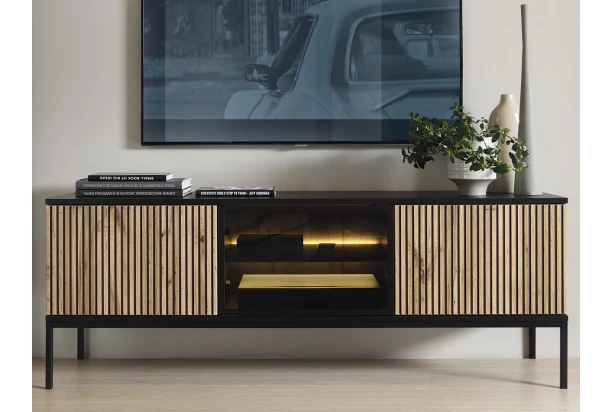 TV skrinka Sento, čierna/dub wotan, s osvetlením