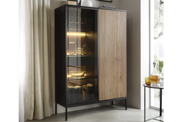 Vitrína Sento, čierna/dub wotan, s osvetlením