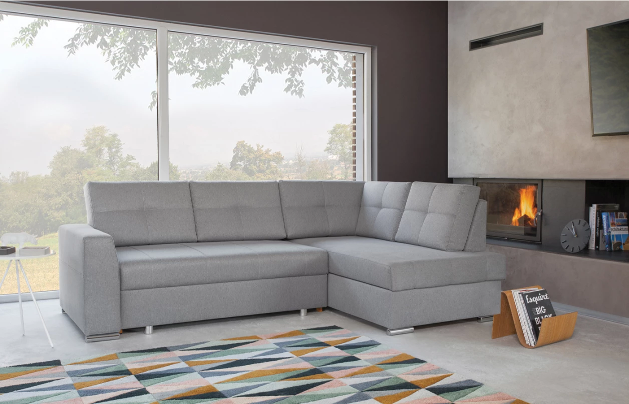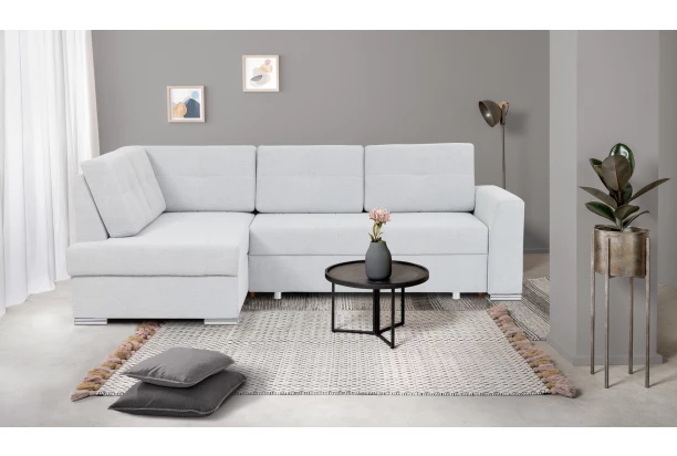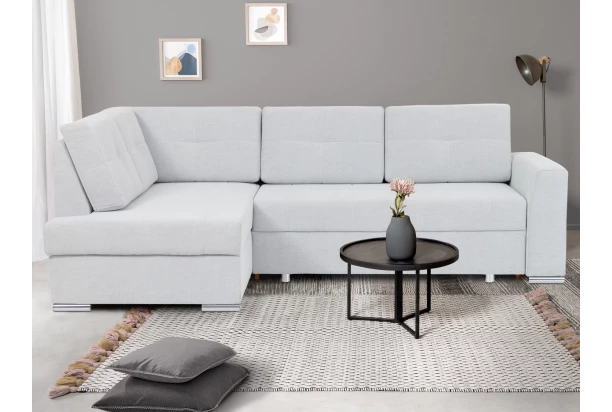 Sympaticky tvarovaná rohová sedacia súprava s otomanom vytvára ľavý roh. Očalúnená jemne štruktúrovanou látkou vo farbe svetlo šedá. Obsahuje úložný priestor aj funkciu rozkladu na lôžko, ktoré je možné využívať aj na trvalé spanie. Sedačka so svojim štýlom sa hodí takmer do akéhokoľvek zariadeného bytu, kde poskytne kvalitné pohodlné sedenie.
