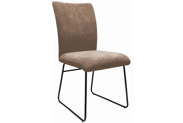 Pohodlne tvarovaná jedálenská stolička je očalúnená mäkkučkou štruktúrovanou látkou vo farbe svetlohnedá. Moderný štýl dopĺňa kovová čierna podnož, ktorá dodáva tejto komfortnej stoličke potrebnú stabilitu.u.