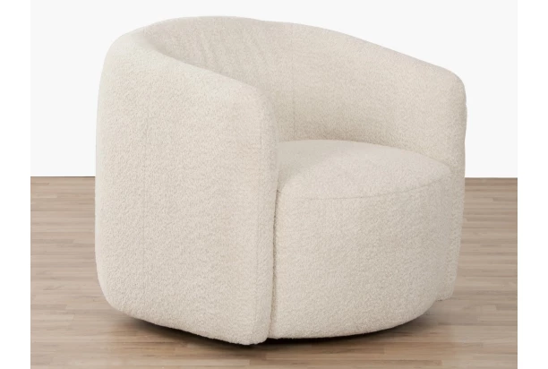 Štýlové zaoblené kreslo ponúka pohodlný komfort a hodí sa aj do menšieho priestoru. Kreslo je navyše otočné o 360 stupňov. Očalúnené mäkkučkou látkou s dlhším vlasom v odtieni krémovo-béžová.