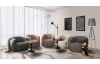 Štýlové zaoblené kreslo ponúka pohodlný komfort a hodí sa aj do menšieho priestoru. Kreslo je navyše otočné o 360 stupňov. Očalúnené mäkkučkou látkou s dlhším vlasom v odtieni dymovo šedá.