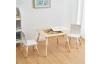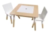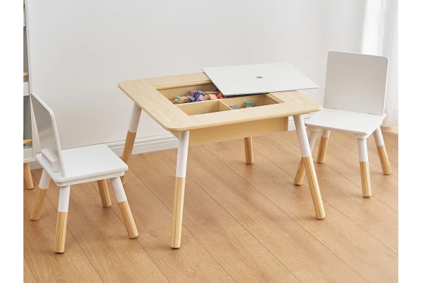 Malý detský set nábytku obsahuje dve stoličky a stolček s odnímateľným vekom, pod ktoré môžete ľahko uložiť kocky, stavebnicu, pastelky alebo drobné hračky. Táto nábytková zostava pre malé deti je nielen praktická na hranie, ale v detskej izbe pôsobí veľmi roztomilo.